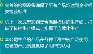 公司是一家瞄準(zhǔn)國際、國內(nèi)市場,集科、工、貿(mào)于一體的綜合性公司,擁有各類先進(jìn)的設(shè)備100余臺(套),公司自主研發(fā)了新型保溫材料及彩鋼復(fù)合保溫板材連續(xù)生產(chǎn)工藝,建成了機上一次成型彩鋼復(fù)合保溫板材的生產(chǎn)線...